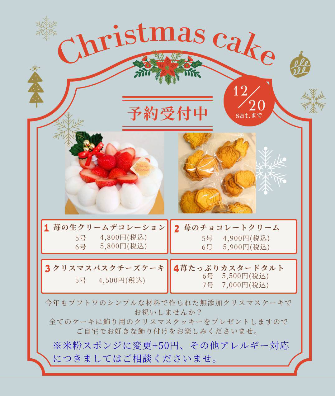 今年もプフトワのシンプルな材料で作られた無添加クリスマスケーキでお祝いしませんか?